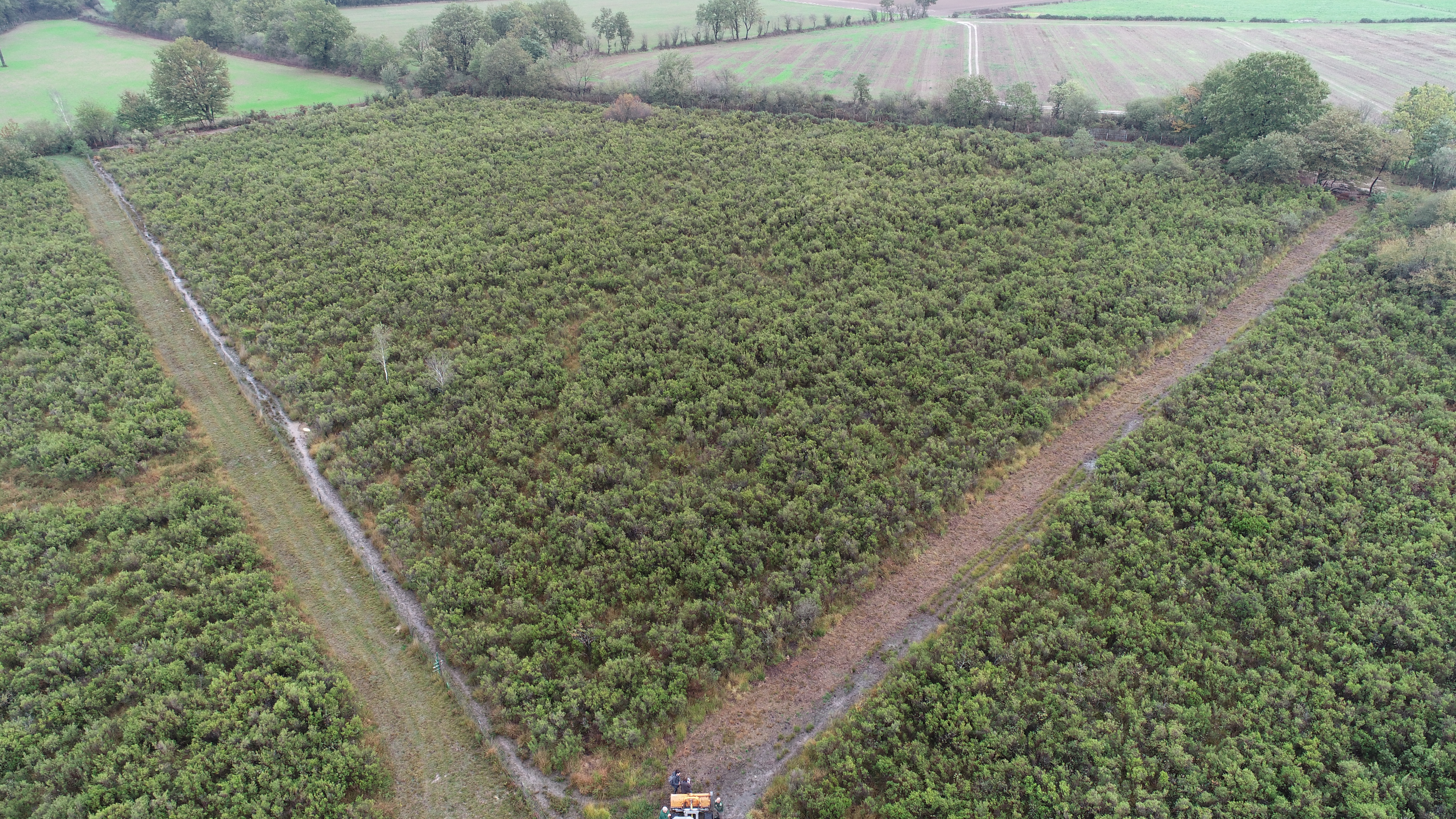 Une entreprise spécialisée en génie écologique est donc intervenue en cet automne 2019 pour que les travaux soient le plus respectueux possible du milieu naturel. Les landes et arbustes ont été broyés et le broyat directement exporté de la parcelle afin qu’il n’enrichisse pas le milieu.