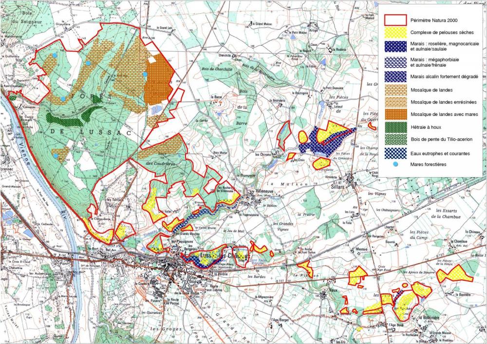 De la forêt à la pelouse sèche, du rocher à la mare, la grande variété de paysages et de terroirs du site de Lussac présente une grande hétérogénéïté dans ses habitats naturels. Cela lui permet d'abriter un grand nombre d'habitats et d'espèces d'intérêt communautaire, ainsi que leurs milieux de vie. Par ailleurs, ce site compte un riche panel de milieux et d'espèces de valeur patrimoniale régionale.