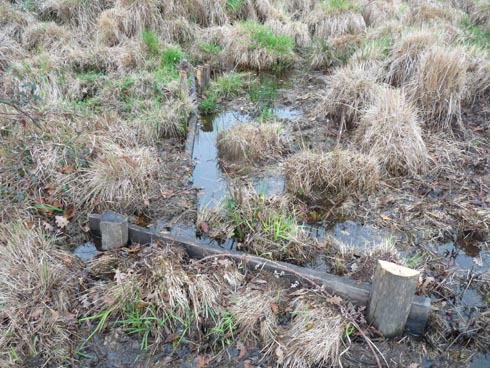 Un système de palplanches a ainsi été mis en place afin de favoriser le débordement de l'eau hors du fossé et son écoulement en contre-bas vers la prairie.